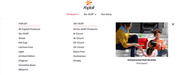 O menu tem uma finalidade prática e não uma finalidade gráfica, pelo que a imagem existente nos sub menus “Products” e “Go-GURT” não fazem sentido.