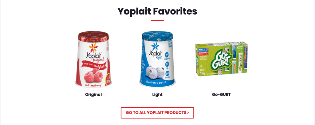 Ao entrar no site da Yoplait, a primeira impressão causada é de uma marca estagnada, demasiado simples para uma marca tão grande. O site deveria parecer moderno, fresco, apetecível e com maior dinâmica. Os produtos têm que parecer saudáveis, apresentar frescura através de uma paleta de cores clara e viva.